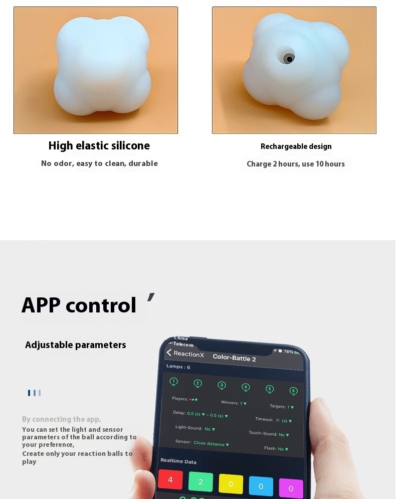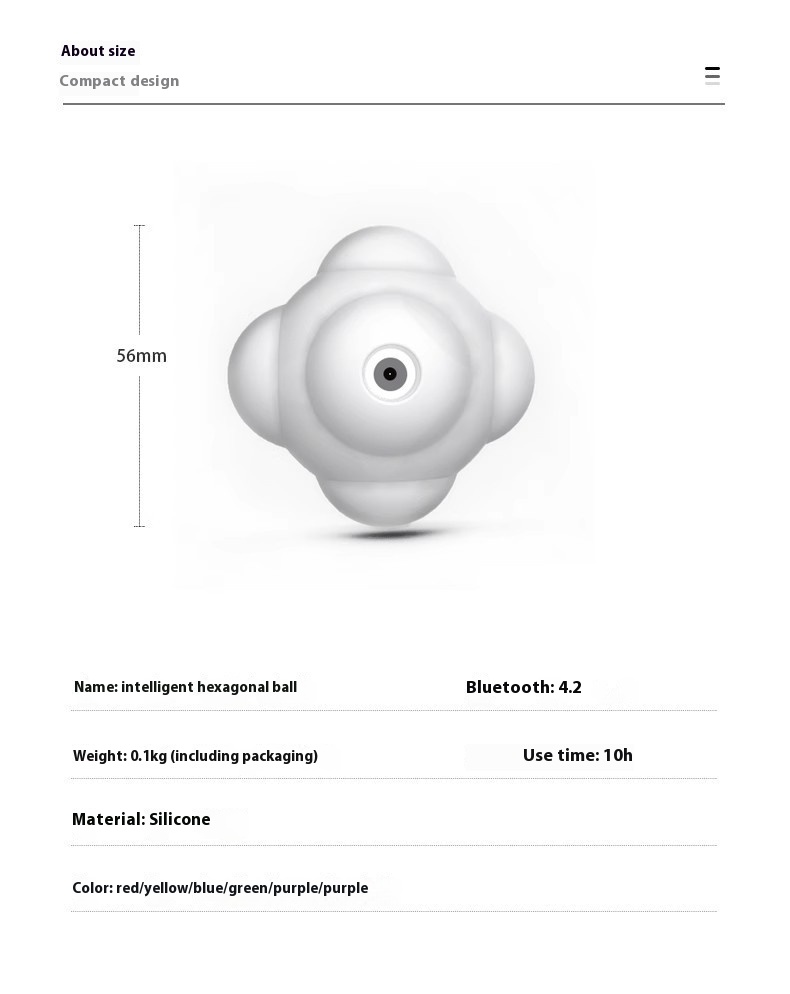 Product information: Name: smart hexagonal ball Color: White Power supply: USB charging Bluetooth: 4.2 Usage time: 10h Material: Silicone Light color: red/yellow/blue/green/purple/light purple